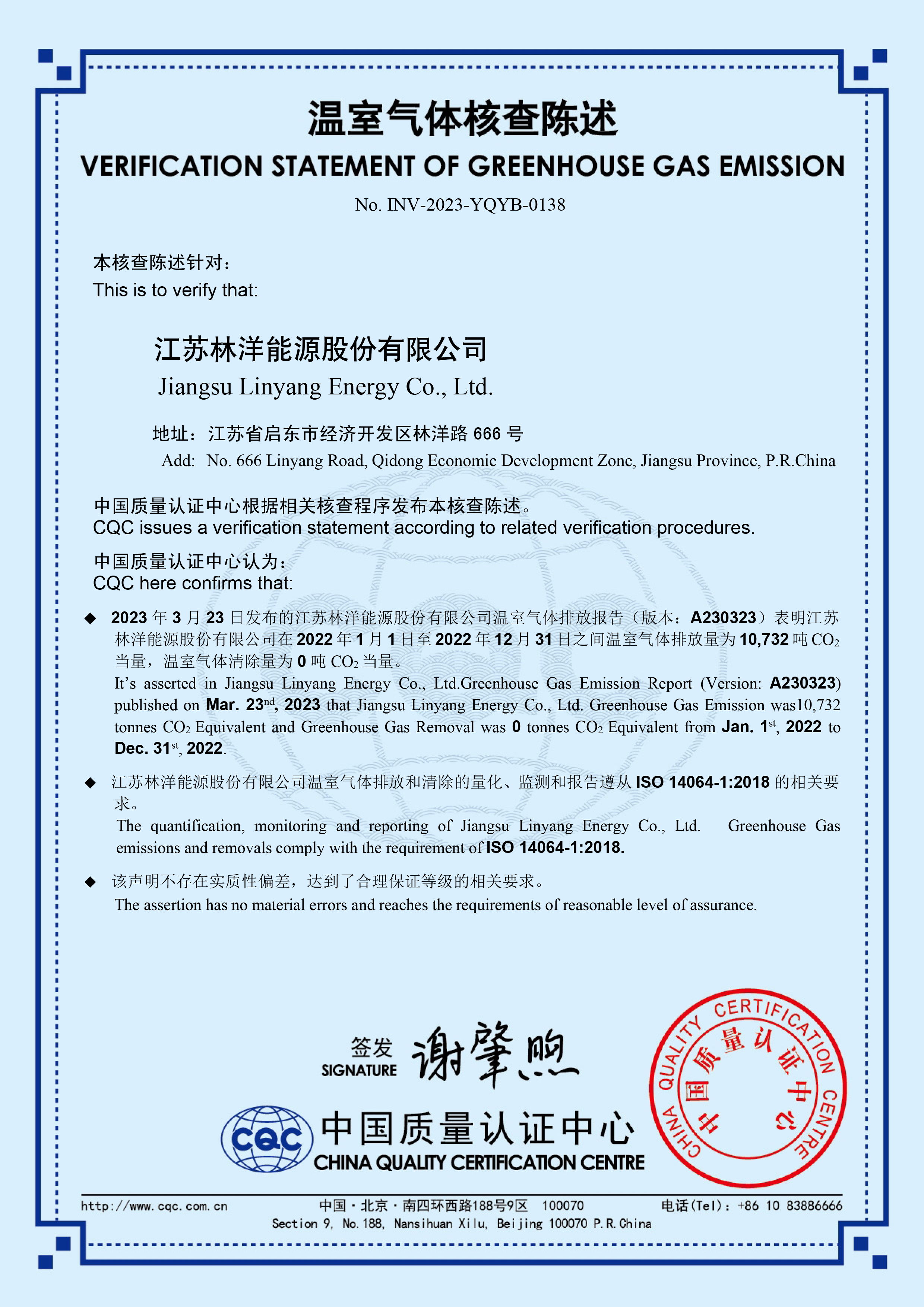 江苏尊龙凯时能源股份有限公司温室气体排放情况公示
