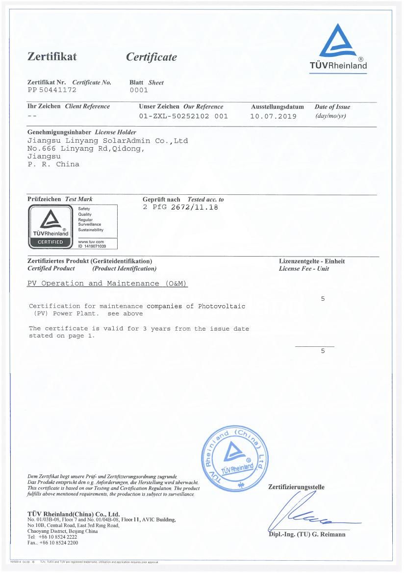 公司已通过“三标一体”体系认证,取得电力施工总承包二级、承装(修、试)四三三许可证、安全生产许可证、劳务派遣许可和TUV AA、中电联5A等权威机构运维能力认证。